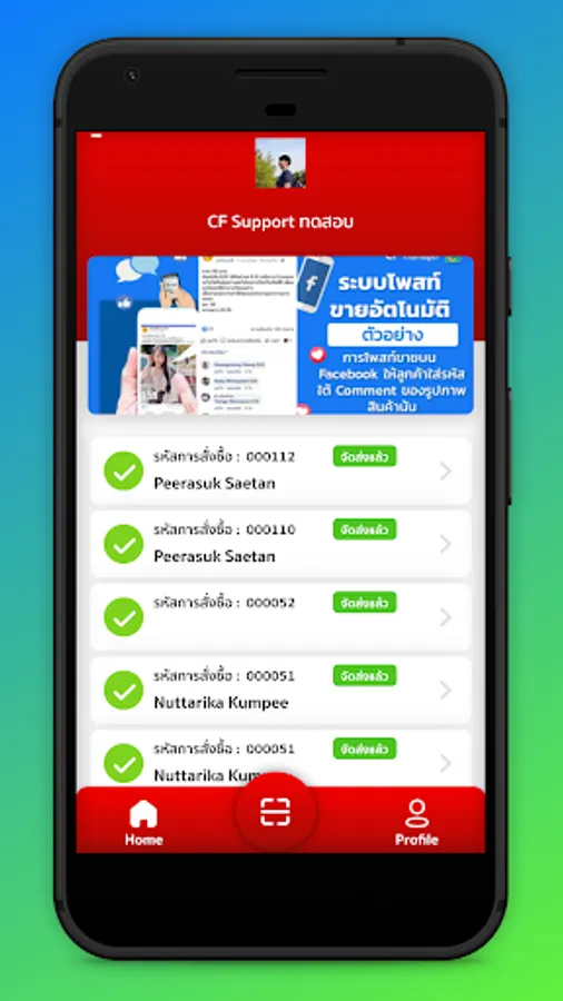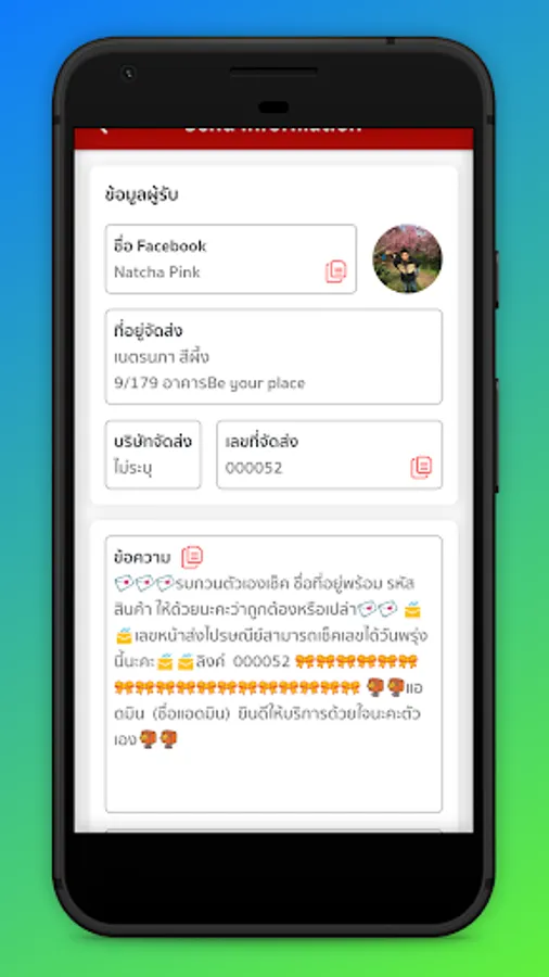 The app helps the merchants to pack items, send to customers online, and have to send messages with the number sent on Socia channels such as Facebook, Line, CF Point.