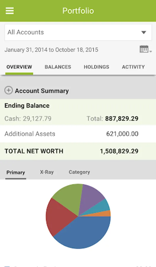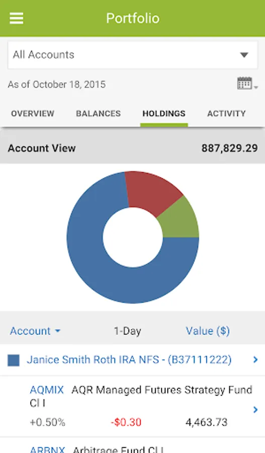 • View of easy-to-read account balance and asset allocation charts