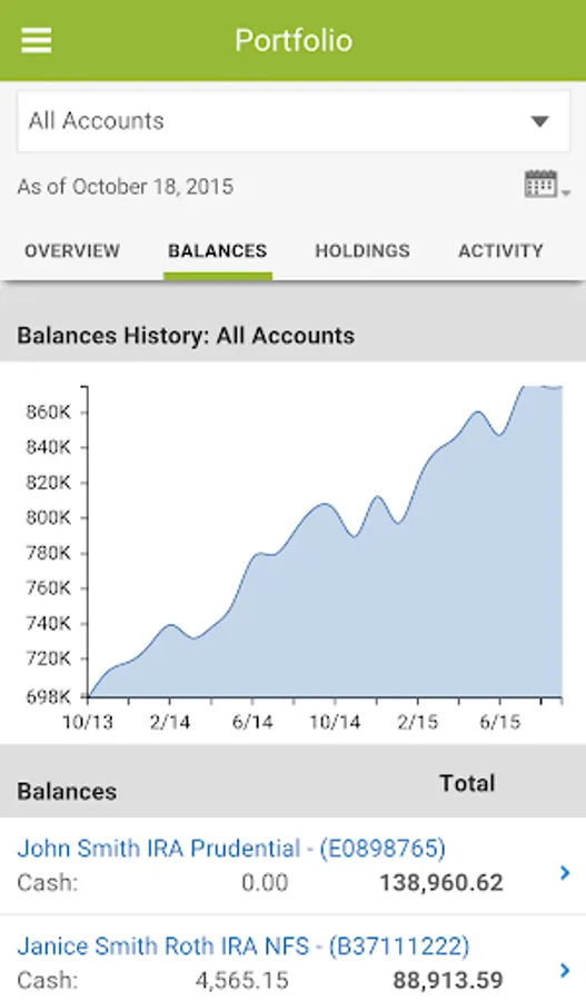 Investor360°® gives you the power to view an executive summary of your complete financial picture. Instead of waiting to get your statements on paper, you can log in to the Investor360° app 24/7 and see the same information your financial advisor sees when reviewing and maintaining your accounts.