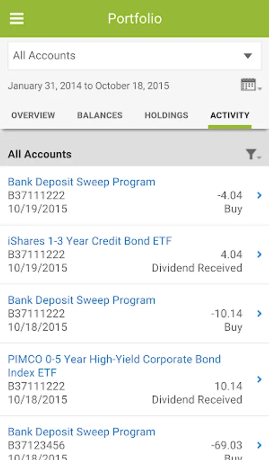 • Access to a detailed position breakdown for each account