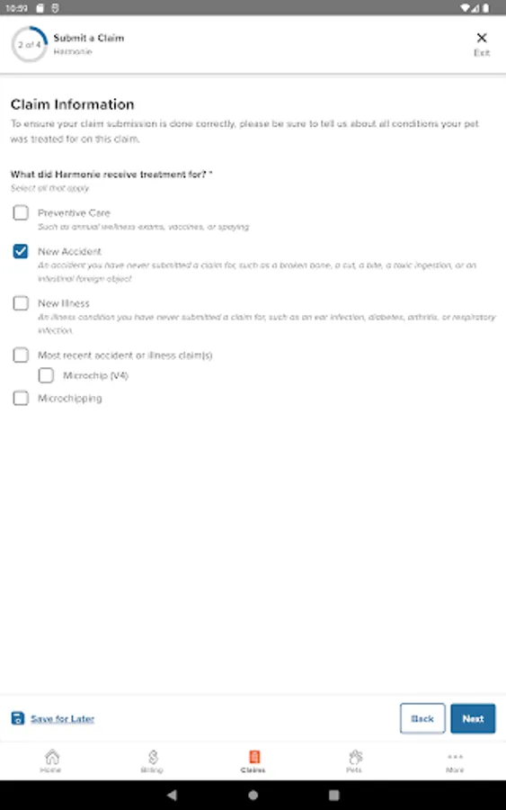 * Submit claims even before you leave the vet—just open the app, enter a little info, and take a picture of the invoice