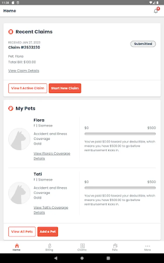 Access all the Member Center features simply by opening the Spot Pet Insurance app. Submit and track claims, view your policy, update your contact info, find or add a vet clinic, and more on your phone or tablet any time.