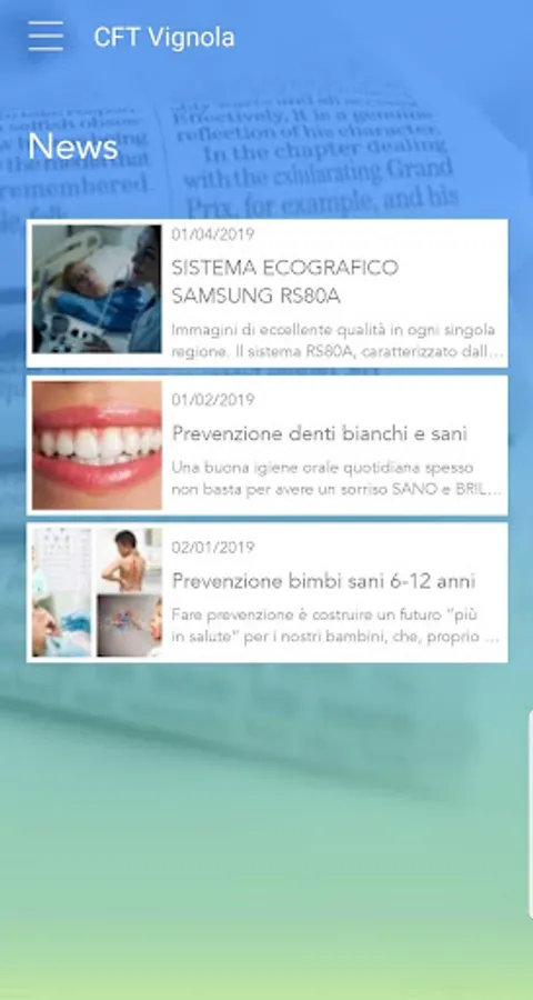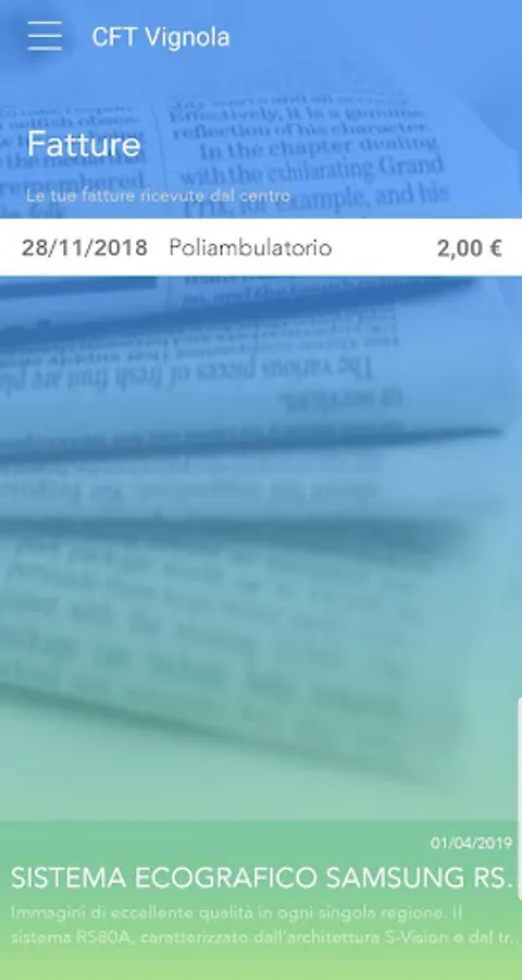 With the CFT app Città di Vignola you can check the status of your appointments, download the bills issued by the clinic and stay updated on the latest news from the center.
