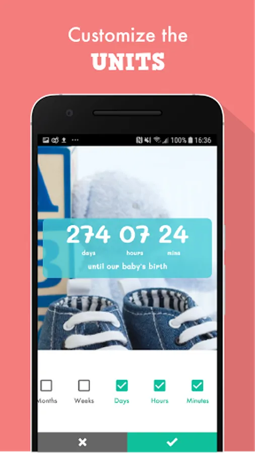It's fun!, Baby Countdown Tracker can countdown to your baby's due date in many different units! Years, Months, Days, Hours, Minutes, Seconds, Heartbeats or Kisses!