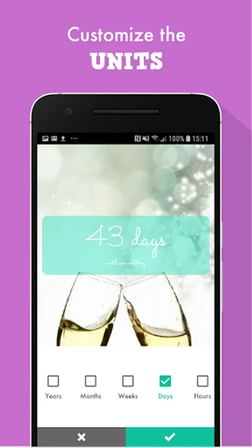 It's fun!, Wedding Countdown can countdown your wedding in many different units! Years, Months, Days, Hours, Minutes, Seconds, Heartbeats or Kisses!