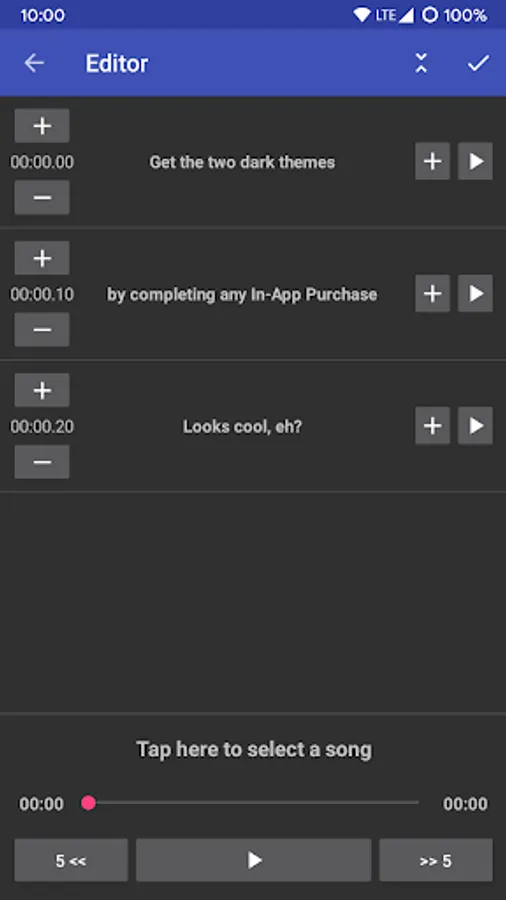 - Supports both fine and coarse tuning of timestamps for synchronising your lyrics perfectly