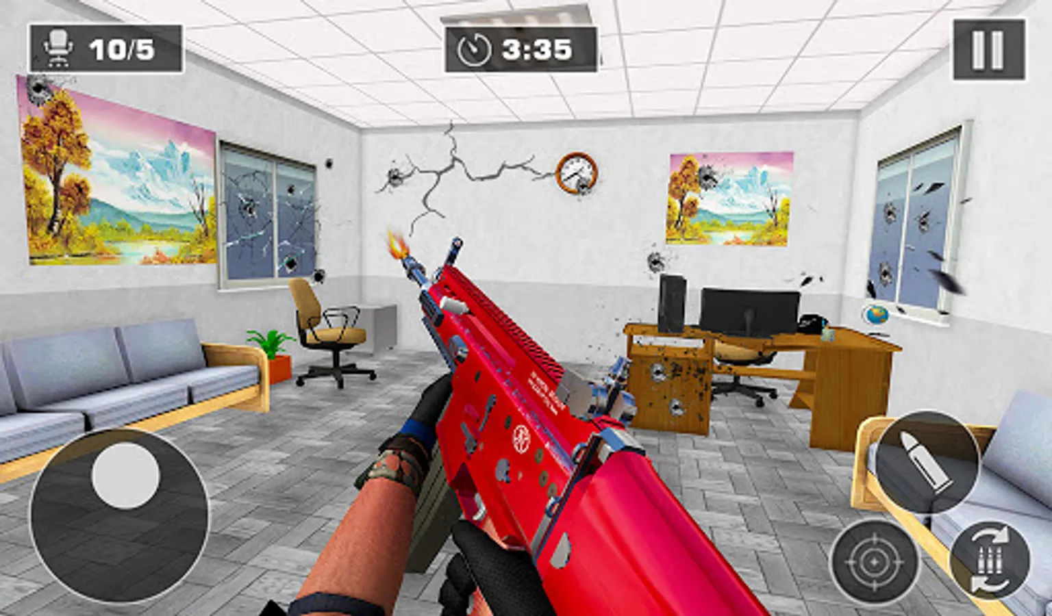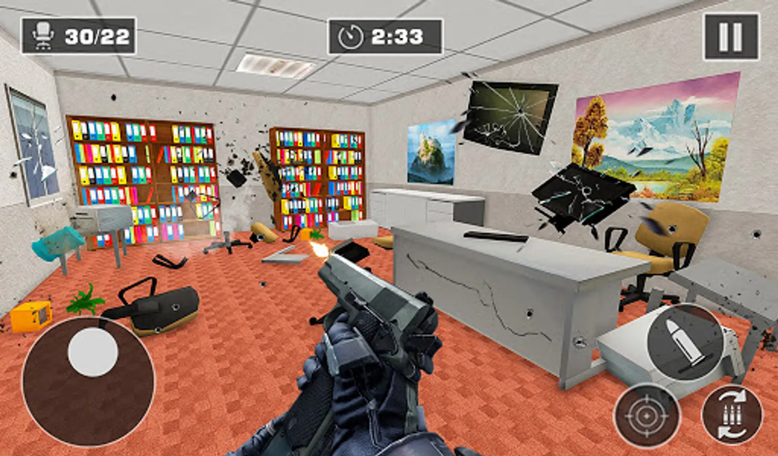 Destroy office anti stress offline shooting games 2021 provide you army weapons and classic guns to be the gunman or a commando. Rule the office building destroy gaming area or meeting room. Smash the CEO cabin or cafeteria the fun never ends with this offline shooting games. If you looking to play some calm games and get stress free then grab your favorite weapons and firearms in this new shooting games. Your search is over for stress relief and calming games so take deep breath and aim to start this new shooting games 2021.