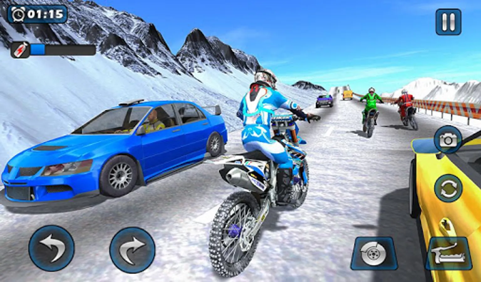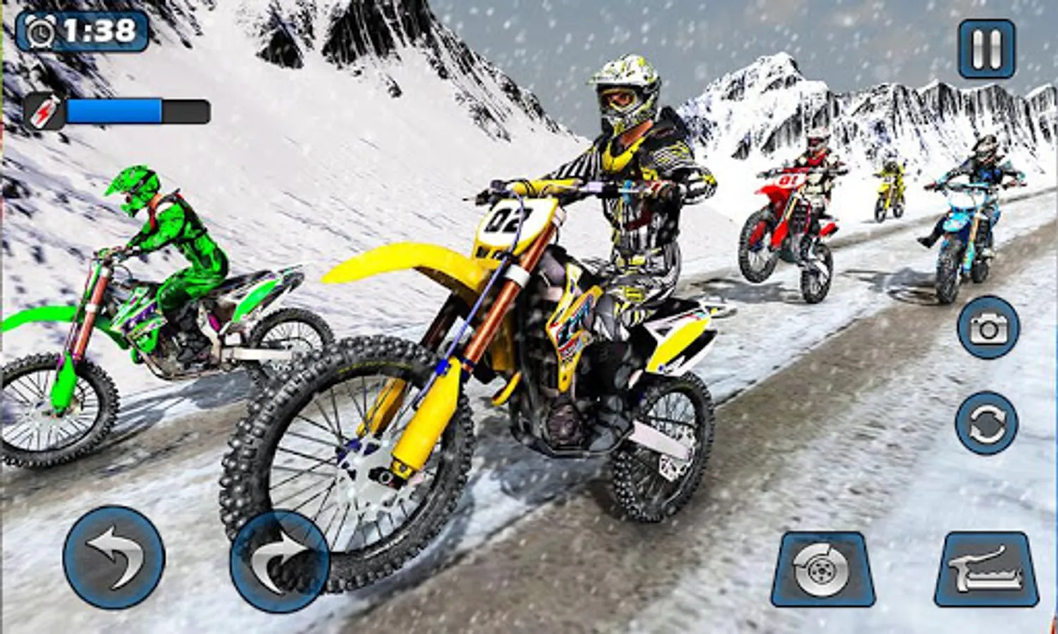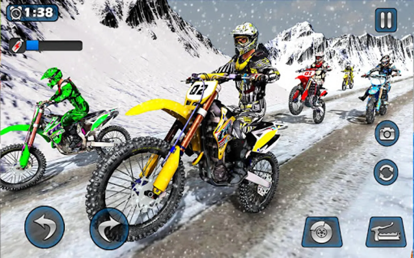 • Beat AI biker opponents in the snow mountain moto Rally 2022