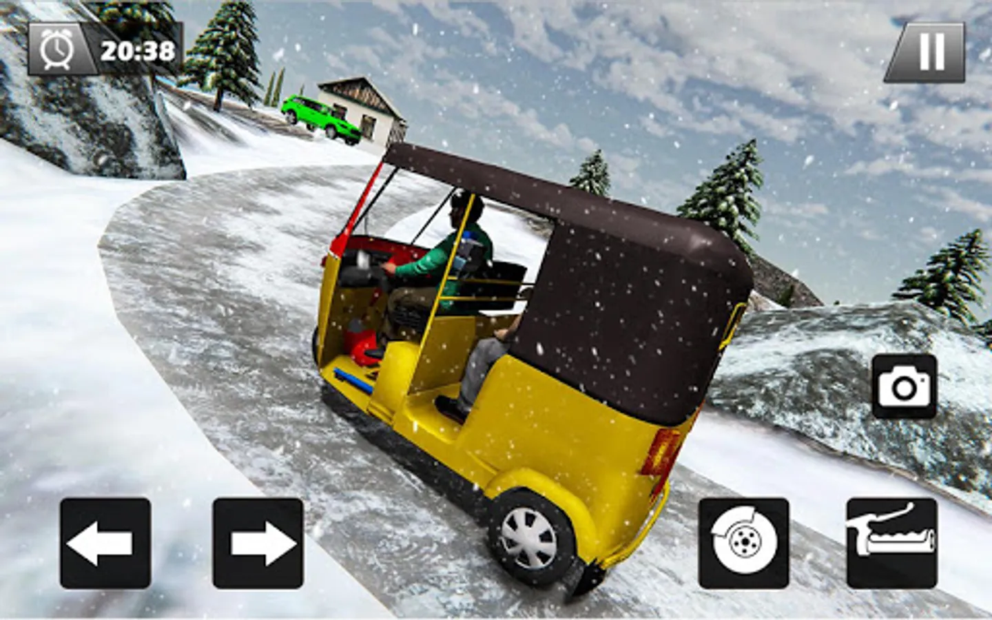 Let's have some fun driving an auto rickshaw in zig zag snow mountains tracks to pick & drop traveler from uphill to down hill area.