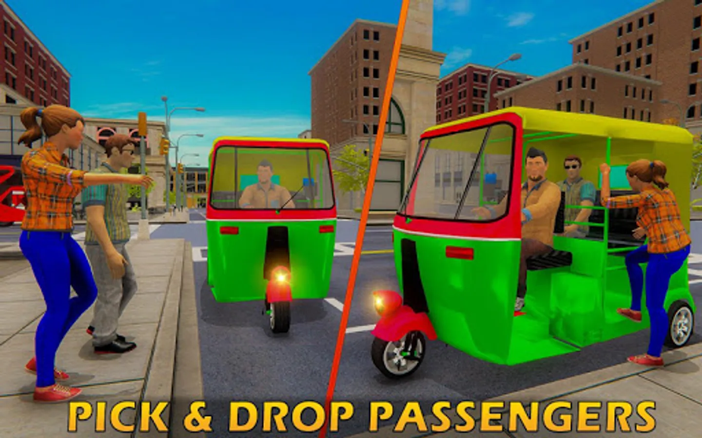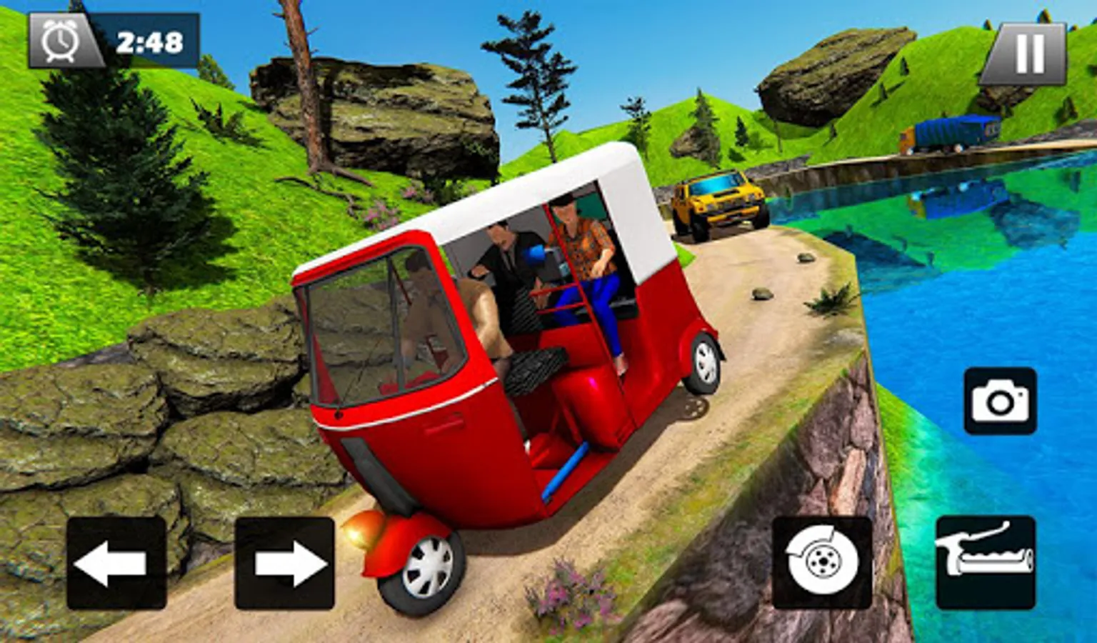 Experience best off-road rickshaw driving simulation games on zig zag mountain tracks. Sit inside auto cab best known as three wheeler taxi automobile. Drive tuk tuk rickshaw from hill top to down to the river valley. Drive across the beautiful mountain pass and tuk tuk auto rickshaw driving is an awesome combination. The tourist are very excited to travel in the tuk tuk rickshaw.