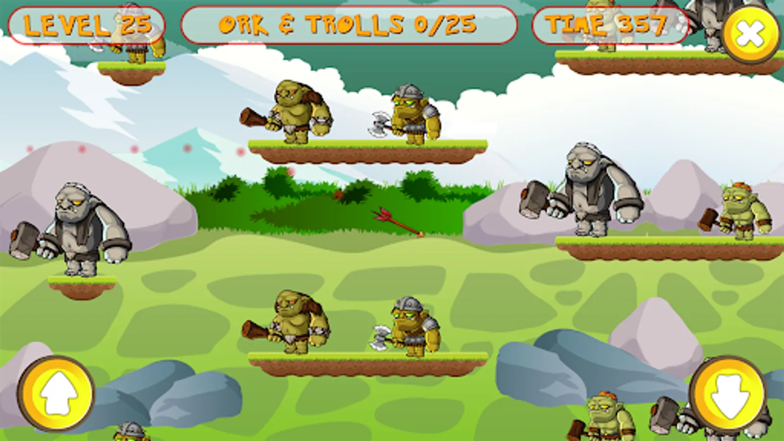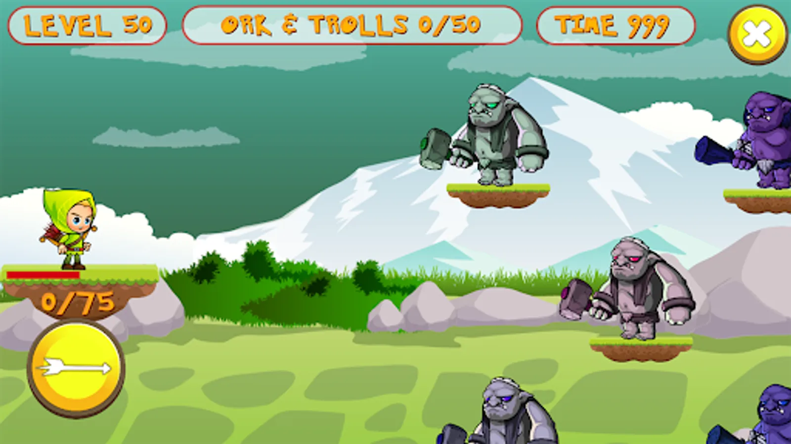Shoot the Arrow and control the arrow by left and right keys. Play the arrow to Enemies to kill/destroy. After you Kill all the enemies, Level will be finished! If time is over then the game is over. If you lose all the arrows before killing them all, then the game is over. When you kill all enemies then you can unlock the next level. You have 50 levels to complete.