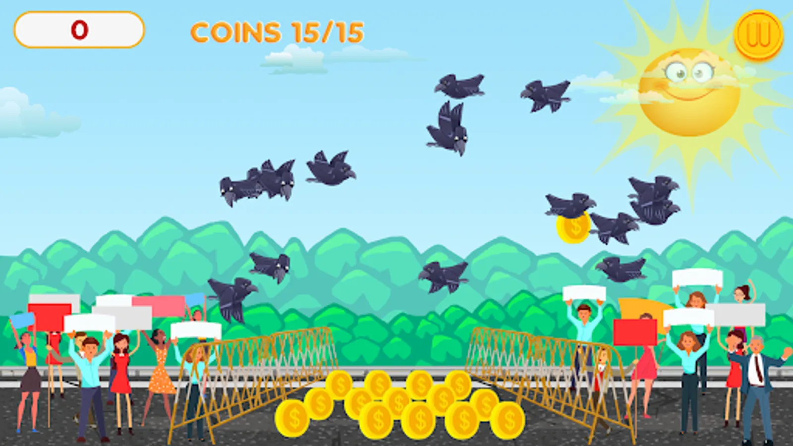 Tap on the crow to hit the plane and protect the coins and collect the score on the ground. If you lose all of the coins, then the game is over.