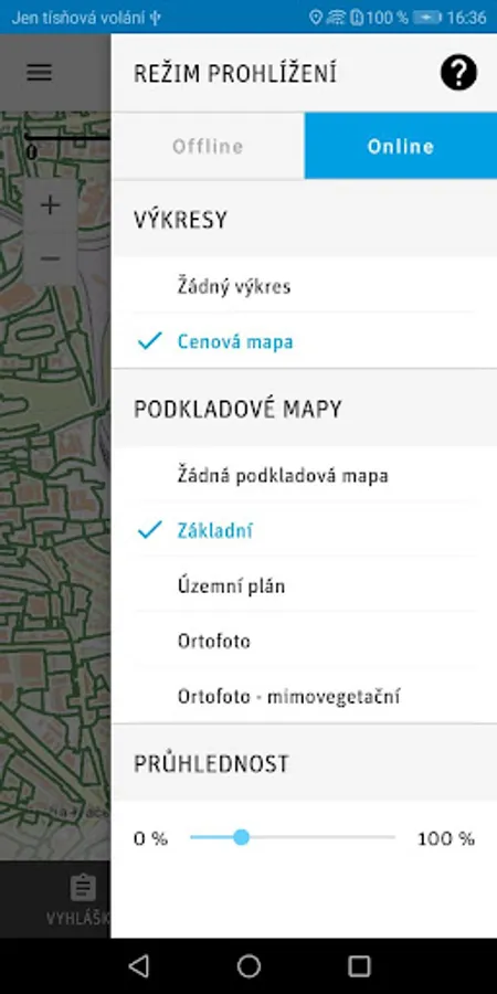 Through the application, it is possible to download price map data to the mobile device, as well as other thematic or background data, thanks to which the application can then be used offline. If offline data is used, the application will notify you of the released data updates.