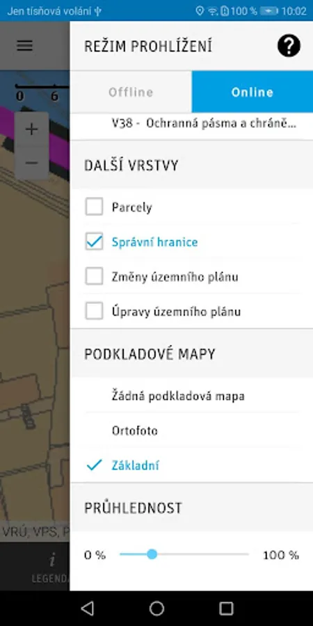 Through the application, it is possible to download individual drawings of the zoning plan and other thematic data to the mobile device, thanks to which the application can then be used offline. If offline data is used, the application will notify you of the released data updates.