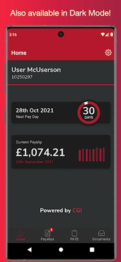 The iPayview mobile application is an extension to CGI’s successful ePayfact product. It provides employees with round-the-clock access to their pay data, so you can enjoy the convenience of accessing your payslips, P60s, P11Ds and uploaded iPayview documents via your smartphone whilst on the go. In order to use the mobile application, you must be connected to the internet and have an iPayview account. If you are not yet registered, you can do this quickly and easily via the existing web application.