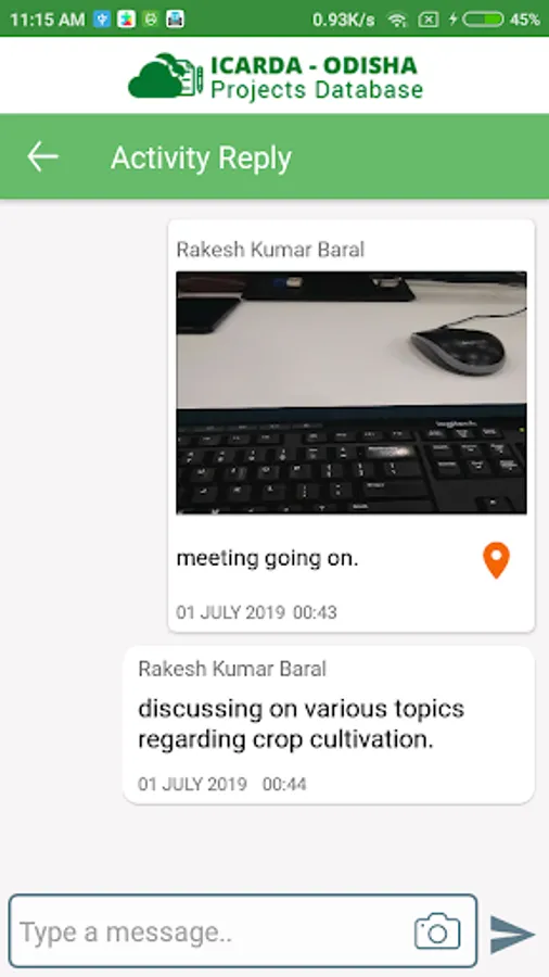 Geo-tagged photo recording/uploading by staff during conducting of the field activity (offline operation)