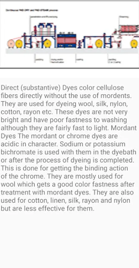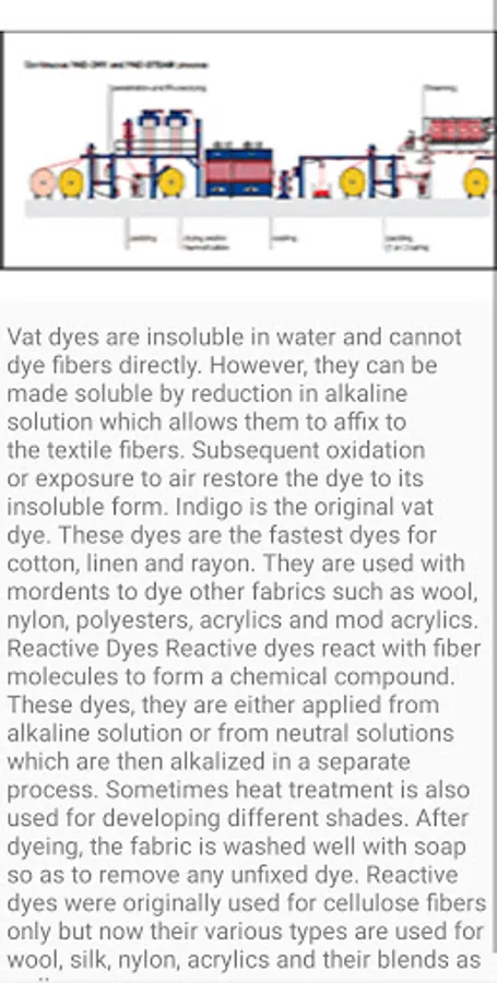 A dyeing process is the interaction between a dye and a fibre, as well as the movement of dye into the internal part of the fibre. Generally, a dyeing process involves adsorption (transfer of dyes from the aqueous solution onto the fibre surface) and diffusion (dyes diffused into the fibre).