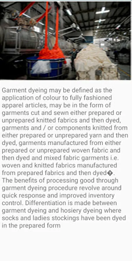 Garment dyeing is the process of dyeing fully fashioned garments subsequent to manufacturing, as opposed to the conventional method of manufacturing garments from pre-dyed fabrics. Up until the mid-1970s the method was rarely used for commercial clothing production.