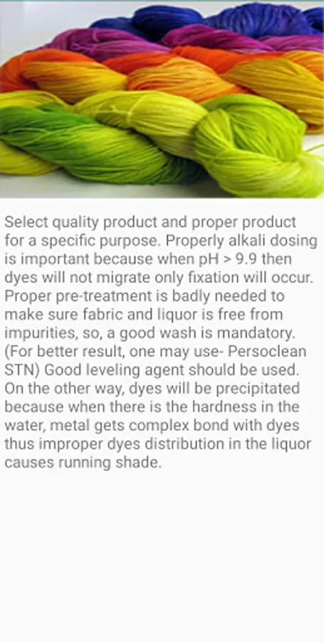 Thus with this theme in mind of "Doing it right the first time" we would have to first understand the problems in the process of dyeing. So, this paper mainly discusses "Problems in Dyeing & its remedies".