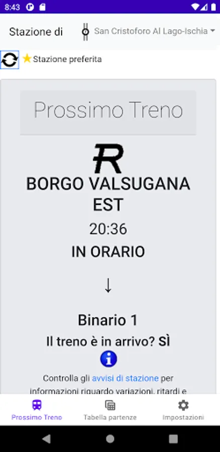 With our app you can view the next train departing from your station together with its possible delay, track and travel status.