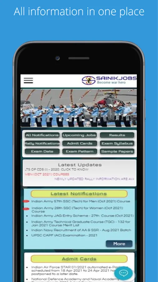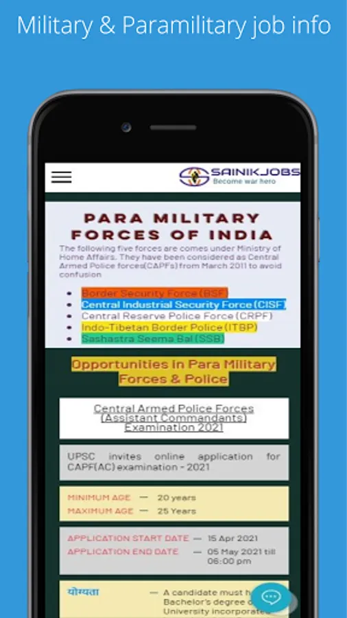 Sainik Jobs App is an app version of sainikjobs.com website, which is helpful to find all types of Military and Paramilitary job information with trustworthy guidance to youngsters who become to war hero.