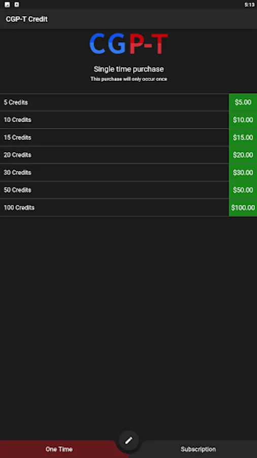 CGP-T is app where you can buy virtual credits via Google Play balance, credits, rewards or any of the other supported payment methods.