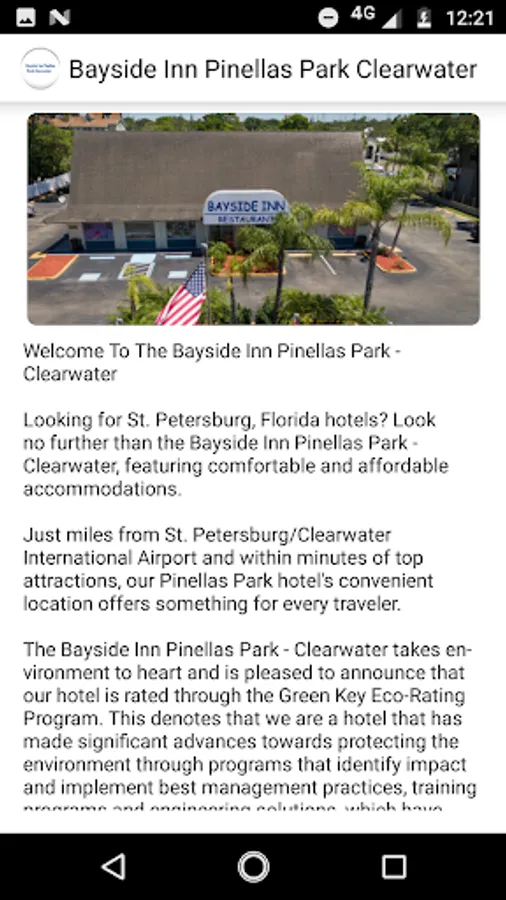 Book Bayside Inn Pinellas Park Clearwater quicker and easier than ever before. With the hotel’s app powered by BingoTravel Apps, connecting with this property directly and simply has never been more convenient. Do everything you need on your smart phone! This single property app lets you take a look at hotel features and amenities and glimpse useful photos -- anytime you want. And of course, you can book directly with this powerful application. Even better, do things around the clock without waiting on hold or dealing with a call center. To connect with this hotel now, download this app.