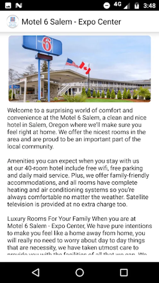 The Motel 6 Salem - Expo Center hotel in Salem, OR is waiting for you! Book this hotel with greater ease and quicker than ever before. And do everything right from you phone! With this single property app brought to you by BingoTravel Apps you can examine hotel features, view hotel amenities and look at hotel photos -- whenever you want. And for booking, there’s no easier way to get the best rate. Even better, the app is always here for you and means you never have to wait on hold again. Download the app for this hotel and see how easy hotel booking can be.