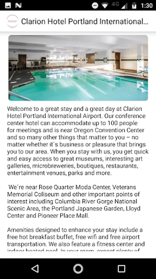 Book Clarion Hotel Portland International Airport quicker and easier than ever before. With the hotel’s app powered by BingoTravel Apps, connecting with this property directly and simply has never been more convenient. Do everything you need on your smart phone! This single property app lets you take a look at hotel features and amenities and glimpse useful photos -- anytime you want. And of course, you can book directly with this powerful application. Even better, do things around the clock without waiting on hold or dealing with a call center. To connect with this hotel now, download this app.