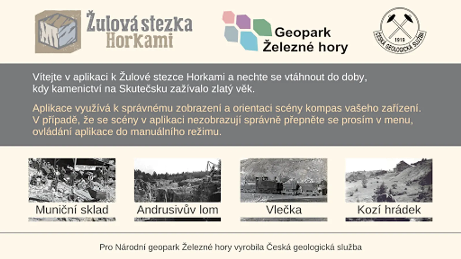 Use a unique insight into the history of mining granite on Skutečský using this app. Horek territory after decades overloaded by human hands and conceals many vestiges after mining activities. Four augmented reality to get stuck into the first period of the Republic, the period of greatest expansion stonework. You will know the true nature of the ammunition depot, imaginary drain the flooded quarry Andrusivův, again exposing field groove and discover the great beginnings of mining today active quarry Litické. The application is obviously working well outside Horek. However, you will achieve the best effect directly on the nature trail that will reveal other secrets - eg. How to make a cube of granite or stone to tears.