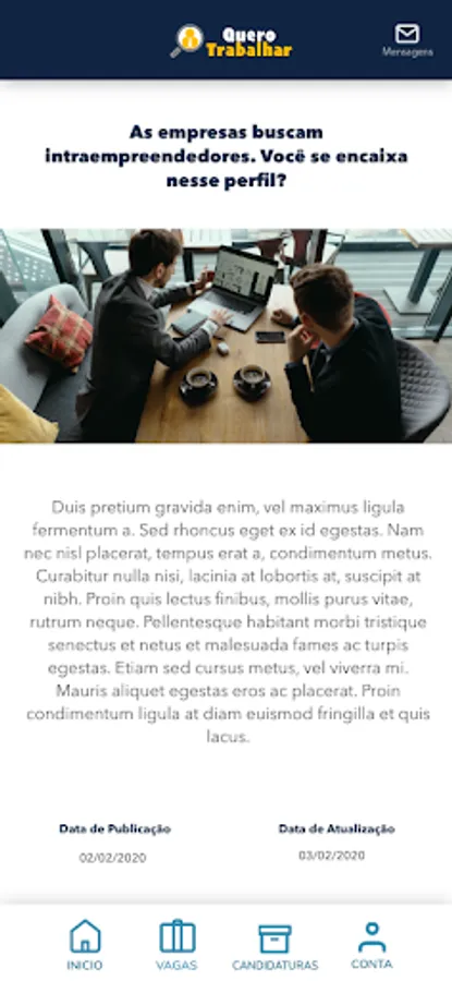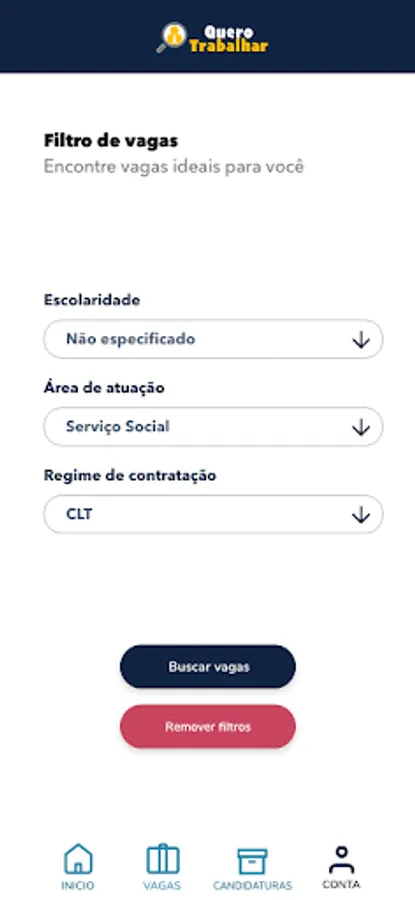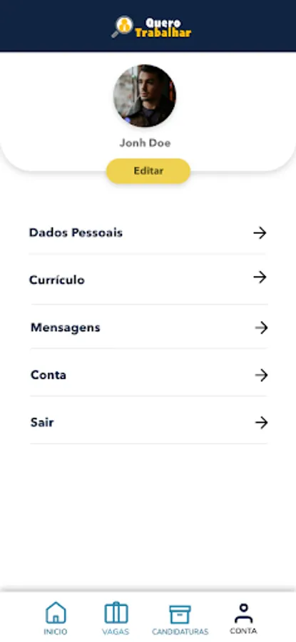The application allows citizens to register their curriculum, add their personal and professional information, add a photo and apply for vacancies available by category.