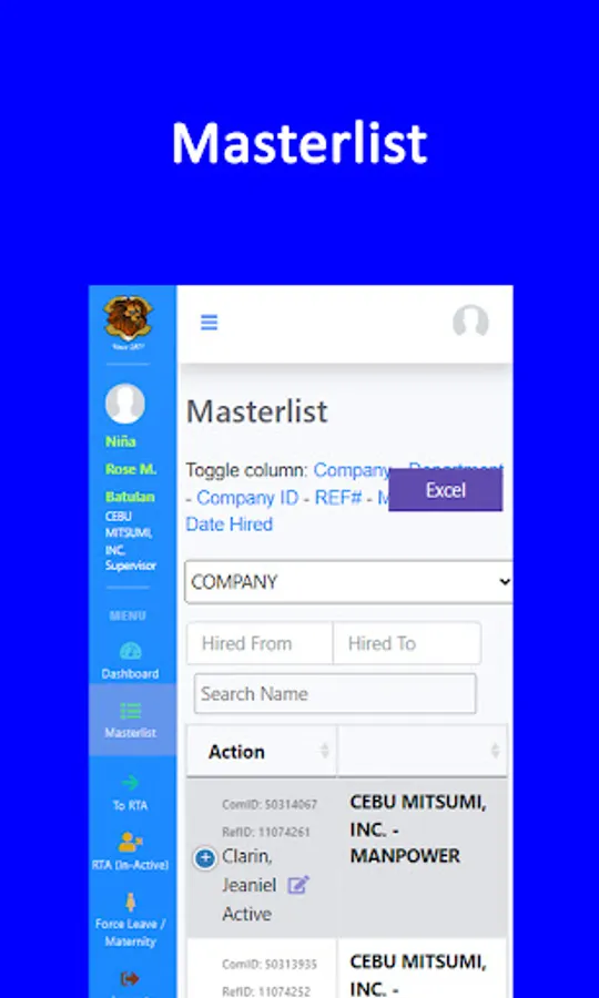 Masterlist - Show all the list of Employees, contain there information and statuses.
