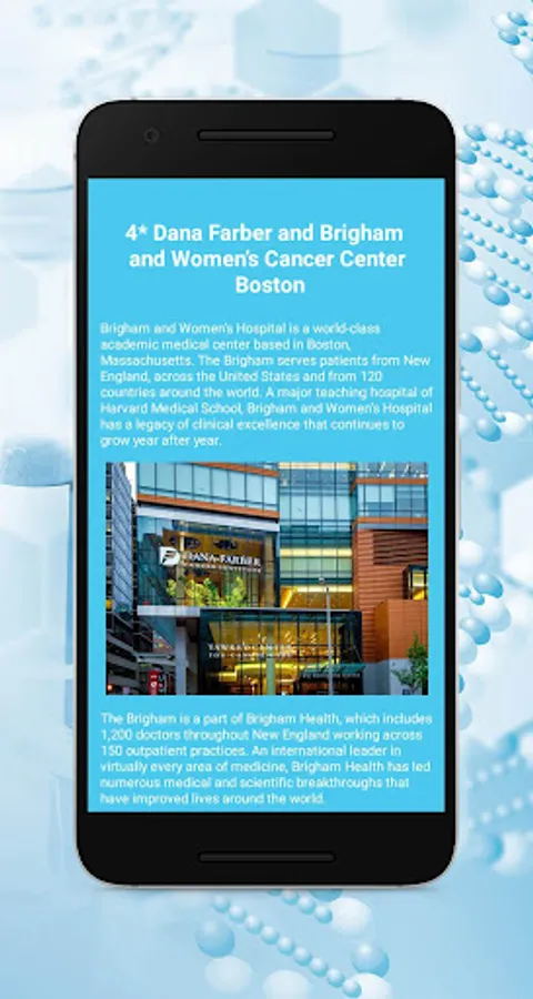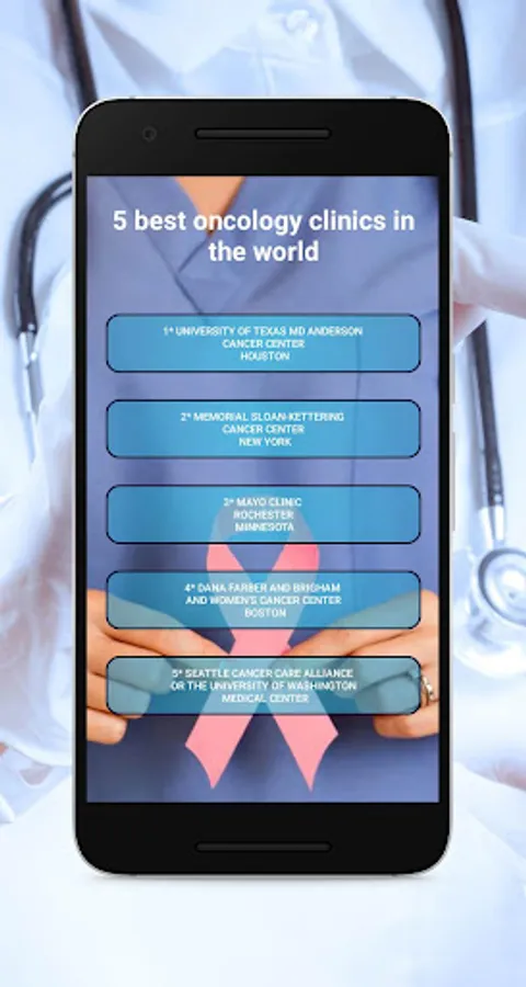In the application "The world's best cancer clinics" we will tell you about 5 best clinics in the world that fight against cancer.