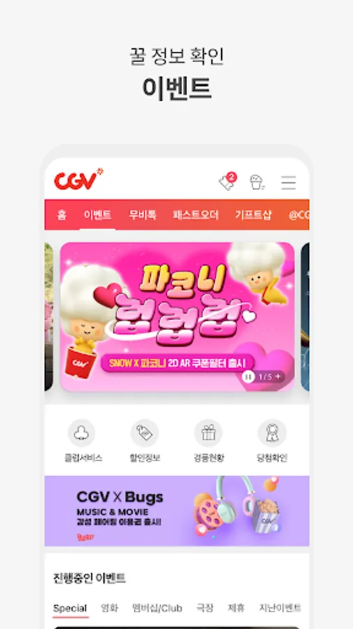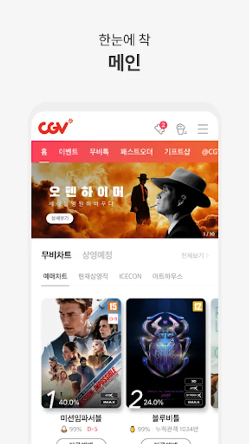 Now, with the CGV app, meet richer movie information and more convenient reservations.