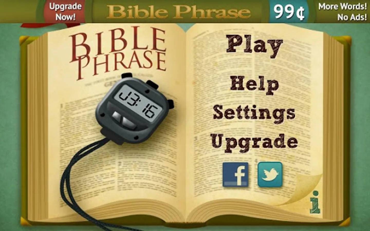 The list of nearly 500 words and phrases includes a wide selection of Books, Locations, People, Phrases, and Pop Culture. Bible Phrase: Books contains a large selection of Books. Upgrade to the full version for no ads and words from every category.
