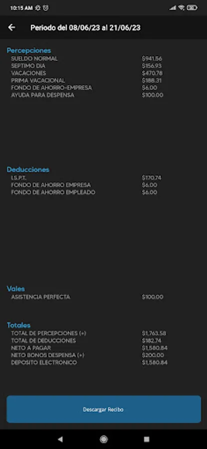 Application to consult and download the payroll receipts of employees, through a username and password