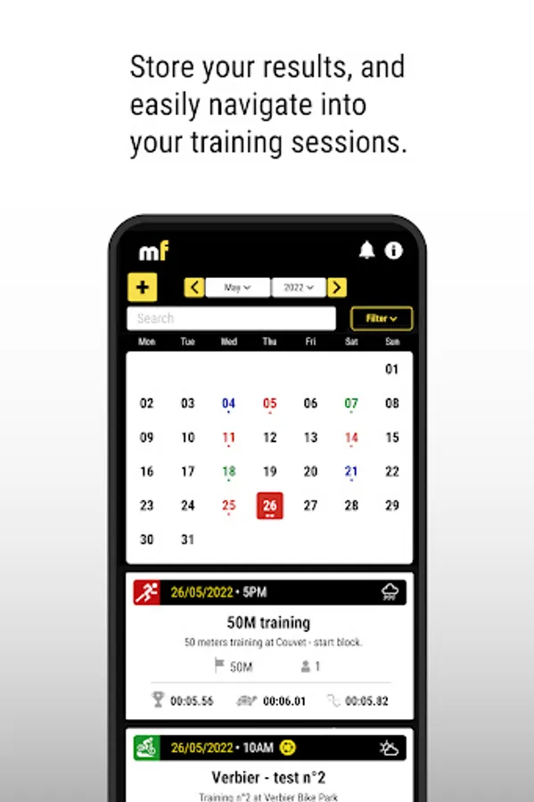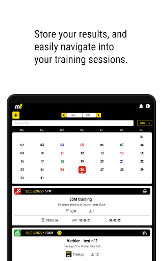 • Easy navigation: MyFreelap displays a calendar and filters to navigate easily inside your Workouts list.