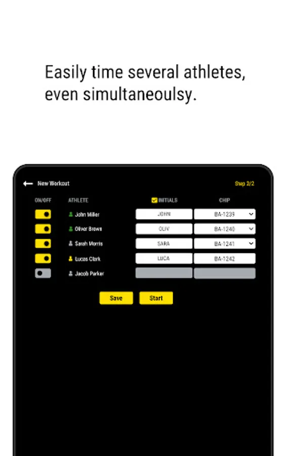 • Create your Teams: To easily time several athletes, even simultaneously.