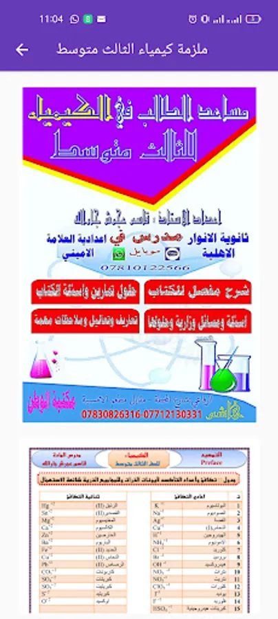 The idea of the application came to the third intermediate chemistry to facilitate the study of the Iraqi student electronically and to develop the study electronically