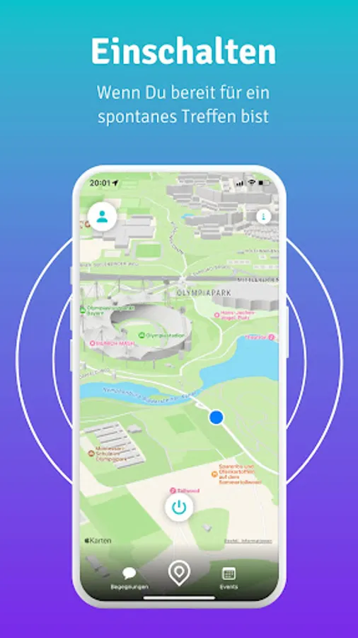 Switch on chaanz and put your smartphone in your pocket. You don't have to do anything else. The app works in the background and notifies you as soon as a person who suits you is in the immediate vicinity and would like to meet up immediately.