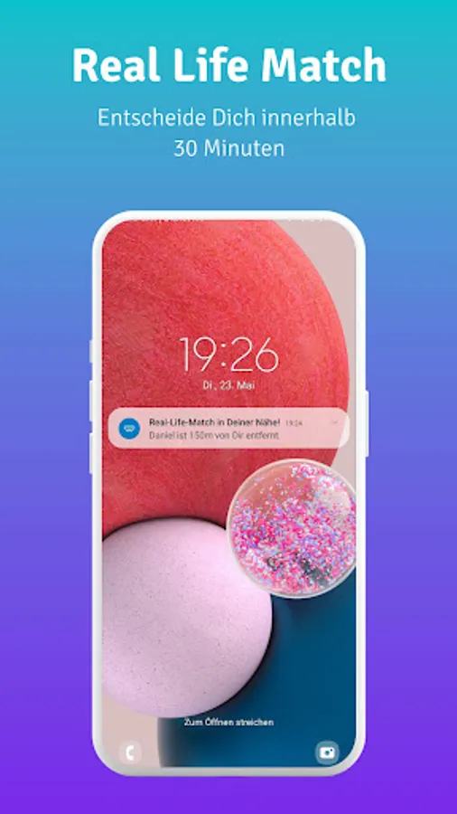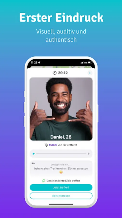 Do you find the person interesting? Then accept the match and meet up for a drink - so you know straight away where you stand and don't waste time chatting forever. Get to know each other on a personal level, get a real impression of each other and find out if you are a good match. But too spontaneous? Of course you can also meet at a later time.