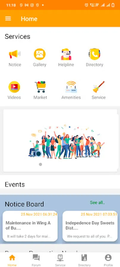 This app is build for community of new colony developed, helping people who are new to the colony. like what amenities are available, events held on colony, nearby services provided with contact details. user can also raise their needs.