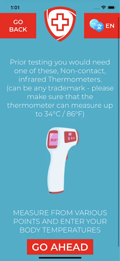 Prior testing you would need one Non-Contact infrafred thermometer. It can be any trademark, pls make sure that the temperature range between 34C upto 42C can be measuered.