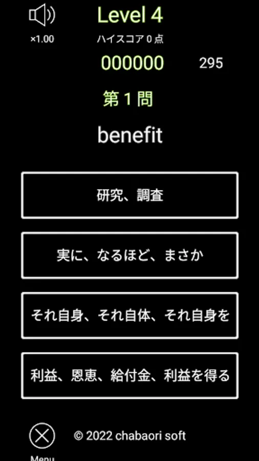 There is a mode where you can choose an English word from four choices from the meaning of the English word, and a mode where you can choose the meaning from the English word from four choices.