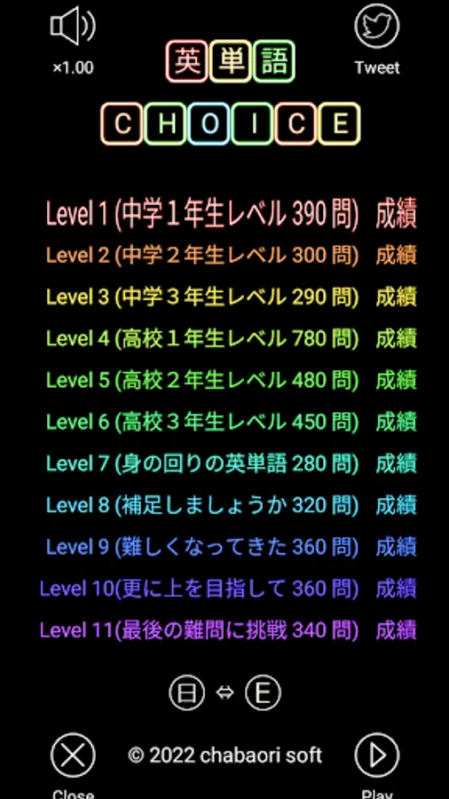 There are 4,350 words in 11 levels, from 1st grade junior high school level to super difficult questions, and categorized by frequency order.