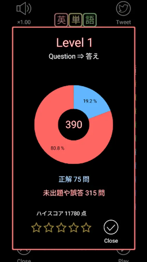 "You can skip questions you don't understand." The correct word is displayed even when Skip, but the score addition is not reset. If you answer correctly at the next challenge, it will be treated as cleared.