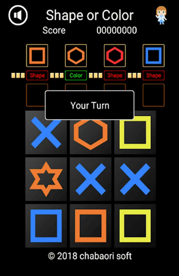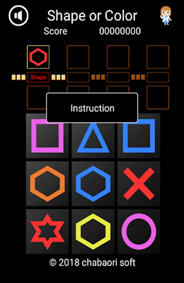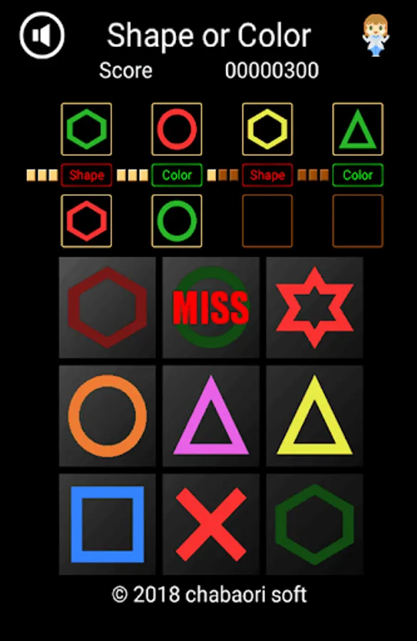 According to a figure and designation displayed in the screen upper section, it is a game to tap a figure of the same shape (or color) from nine panels of the lower berth timely. It is clear if I answer it correctly by four 1 stage figure.