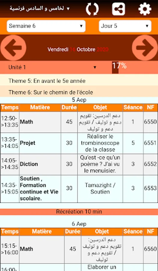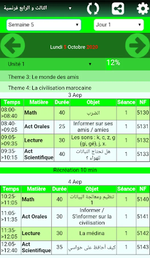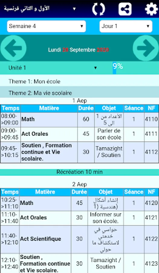 * 4 Fr: path of letters + school of words + my learning + my book of French + new space + to communicate