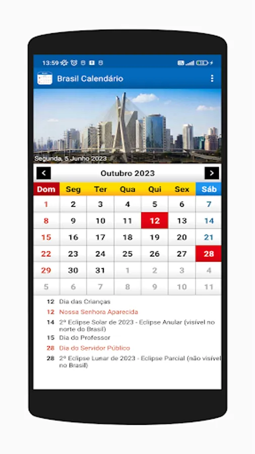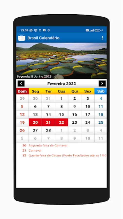 This Brazilian calendar app is a calendar app very similar to the calendar on the wall of your house, this calendar is very complete and updated since national holidays, joint license for important moments related to Brazil is in this calendar.