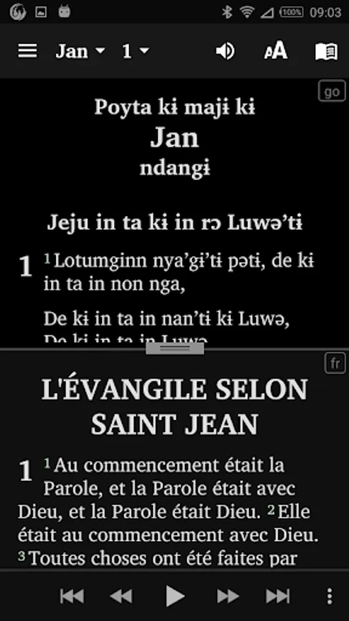 This application presents you the New Testament translated in the Gor / Bodo language spoken in Chad.